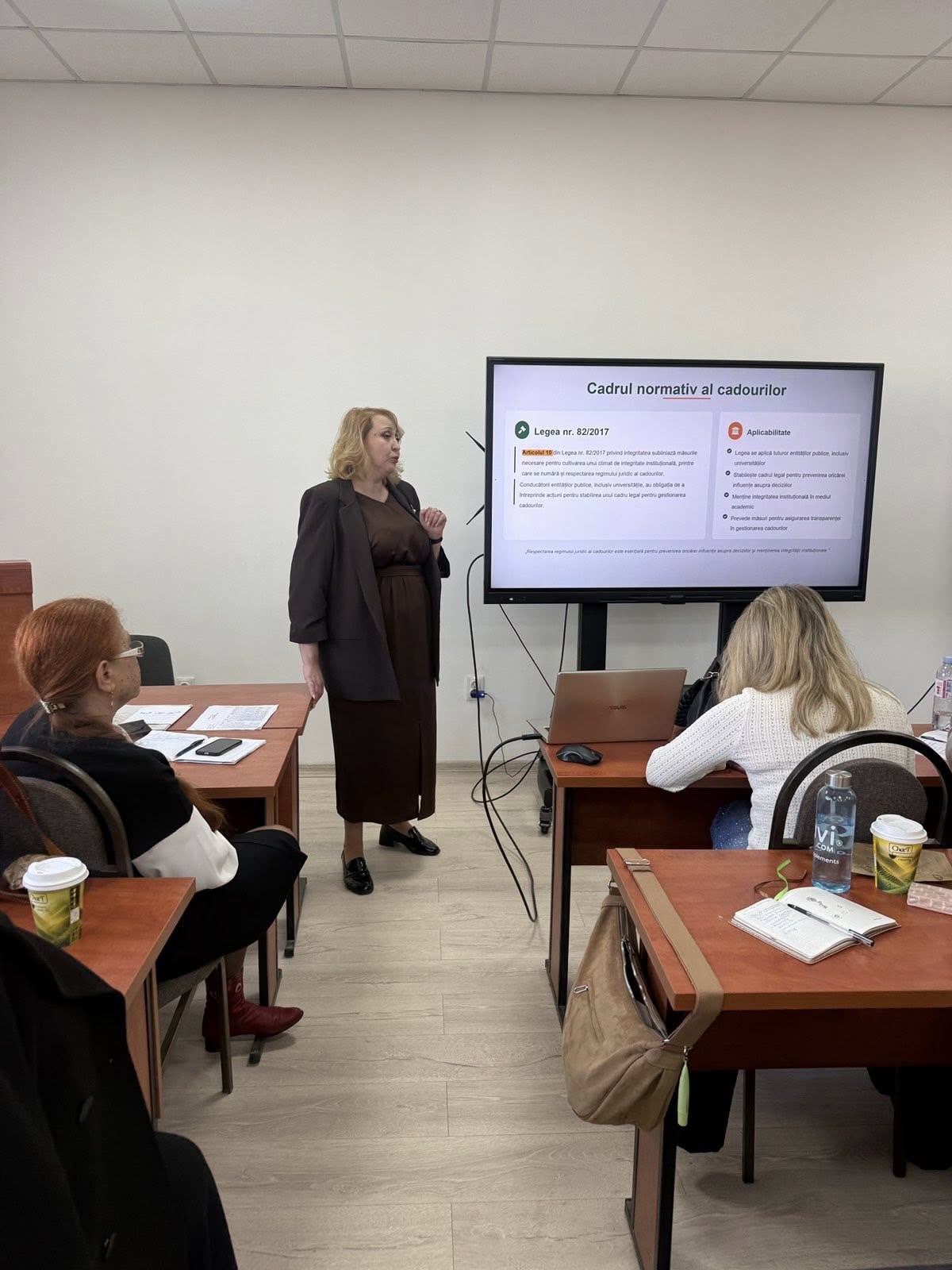 Sesiunea de formare a fost susținută de formatorii: Cuciurca Doina, dr., lector universitare și Popovici Cristina, lector universitar, reprezentante ale Facultății de Drept a Universității de Stat din Moldova , implicate activ în promovarea Culturii Integrității Academice în cadrul universității.